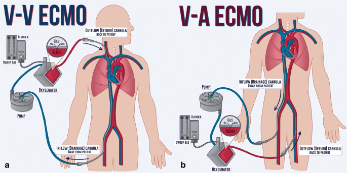 - Veno-arterial (VA) ECMO does the work of both the heart and lungs