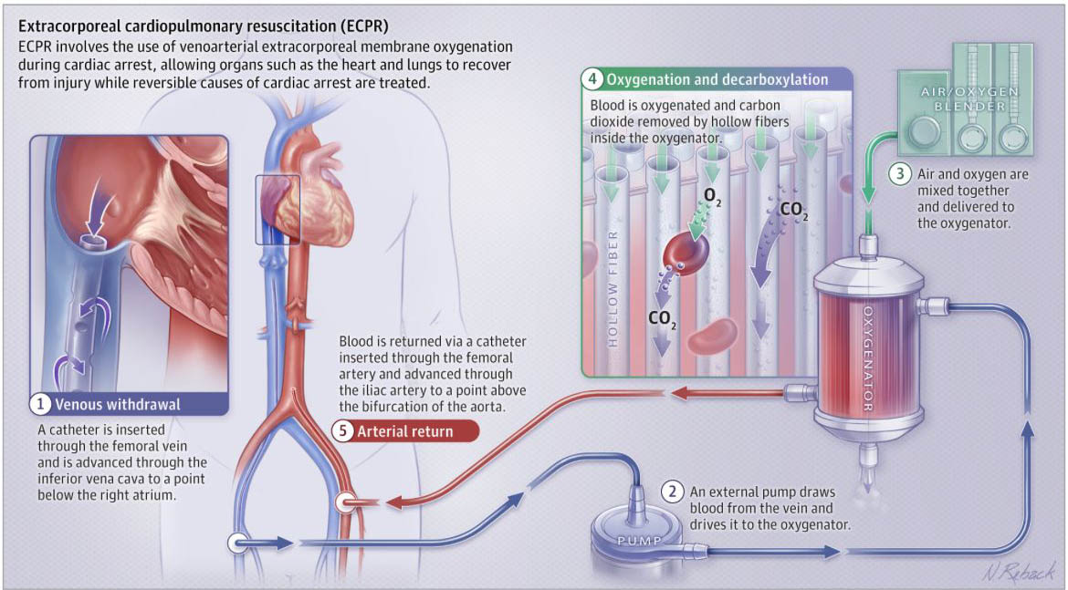 ECMO provides time for the body to rest and recover by doing the work of the heart and lungs. This gives the patient time to rest and heal from the underlying illness.