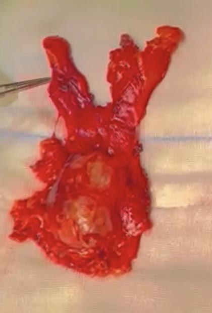 Thymectomy done for Myasthenia gravis in a patient with a large thymoma.